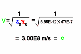 Karena εo= 8,85 . 1012 C2/N.m2 dan μo = 4π.107 Wb/A.m